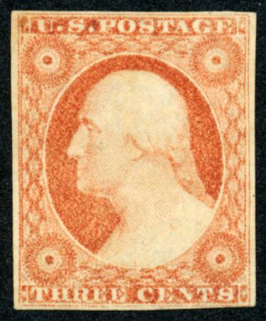 Scott 11A, VF LH, 4 margins, 1852 3c Dull Red CV $250.00