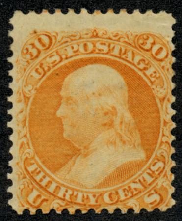 Scott 71, Fine Hinged, Very Scarce Mint, 1861 30c orange CV $2750.00