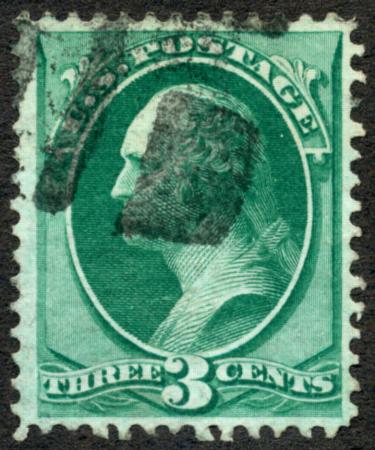 Scott 136A, VF, a few shorter perfs, 1870 3c Green w/ I Grill CV $110.00