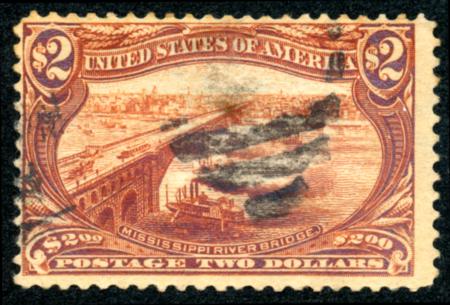 Scott 293, Fine, Light Cancel especially for this hi-value, central thin area, 4 clear margins, 1898 $2 Trans-Mississippi CV $1000.00