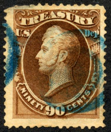 Scott O113, F-VF, Blue Circular Cancels, Face-Free Cancel, UL perf faults, thins, 1879 90c Treasurey on Soft Porous Paper CV $750.00