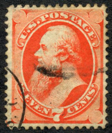Scott 147, VF, very light cancel for this, face-free, 1871 7c vermillion, no secret mark