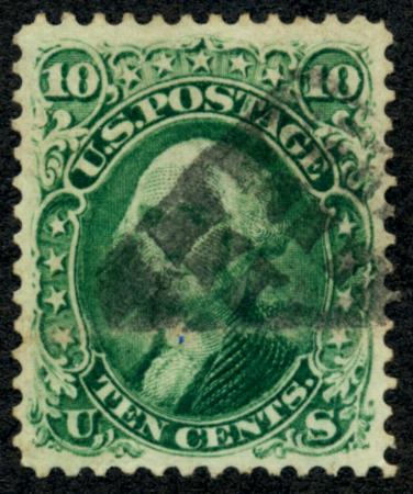 Scott 68, VF-XF, unusual S-O-N triangular cancel, light horiz. crease, 1861 10c green |