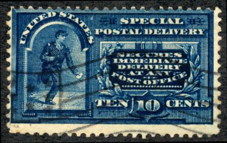 | Scott E5a, Fine, "Dots in curved frame above messenger", 1895 10c Blue, DL wtmk, P.12 |
