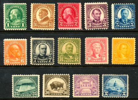Scott 552-555, 557-562, 568-570,572, F-VF Hinged, 1922-25 Flat Plates Group of 14 different