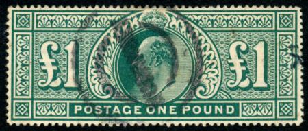 Scott 142, VF, tiny closed tear at right, 1902 £1 blue green CV $825.00