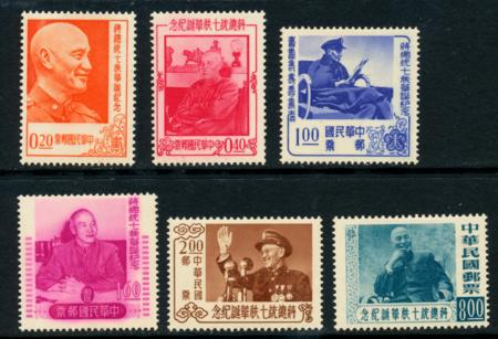 Scott 1143-1148, F-VF Hinged, color bleeds on back, 1956 set of 6, Chiang Portraits CV $141.00