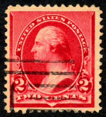 | Scott 220c, VF, strong color, face free cancel, 1890 2c Dark Carmine, "Cap on both 2's" |