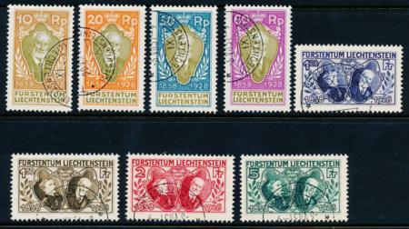 | Scott 82-89, VF, likely philatelic cancels, priced like unused, 1928 Prince Johann, set of 8 |